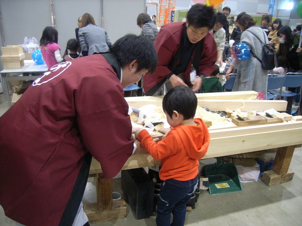大工さんとカンナがけ体験コーナーでは、沢山のお子様の笑顔が見ることができました!