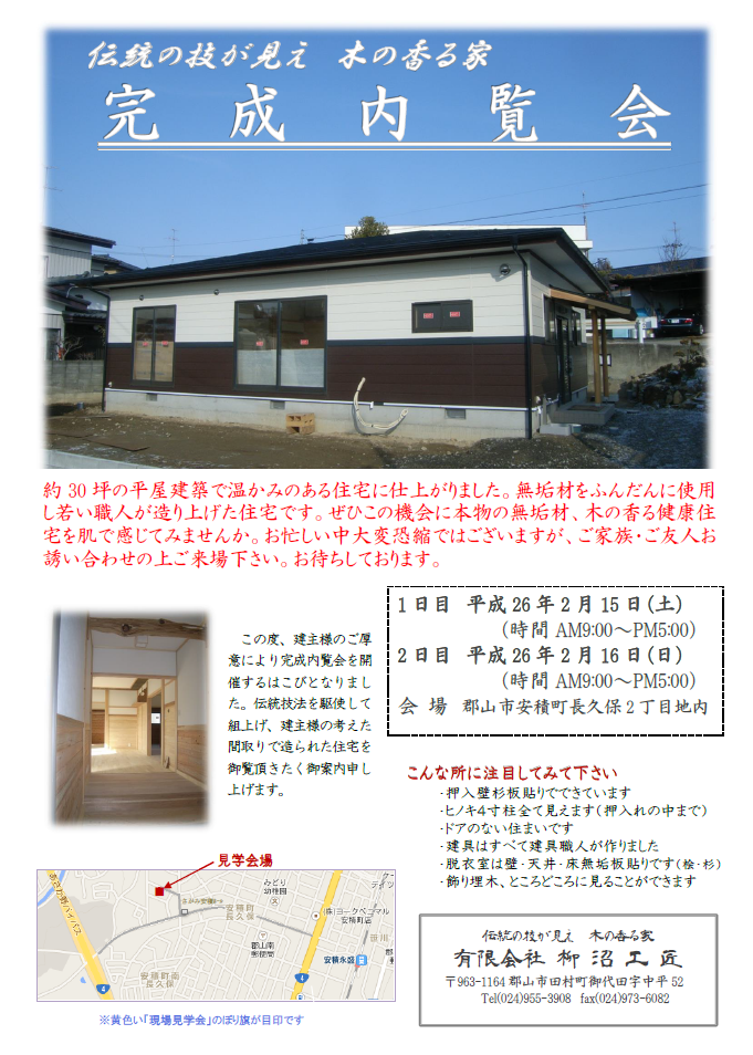 柳沼工匠の現場では、お声かけ頂ければ随時見学ができますので是非お越しください。