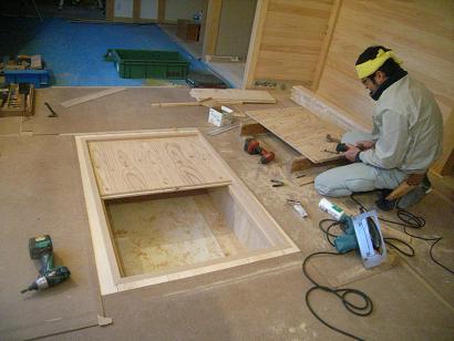 掘りごたつの中張りの板は、桐を使用しています。